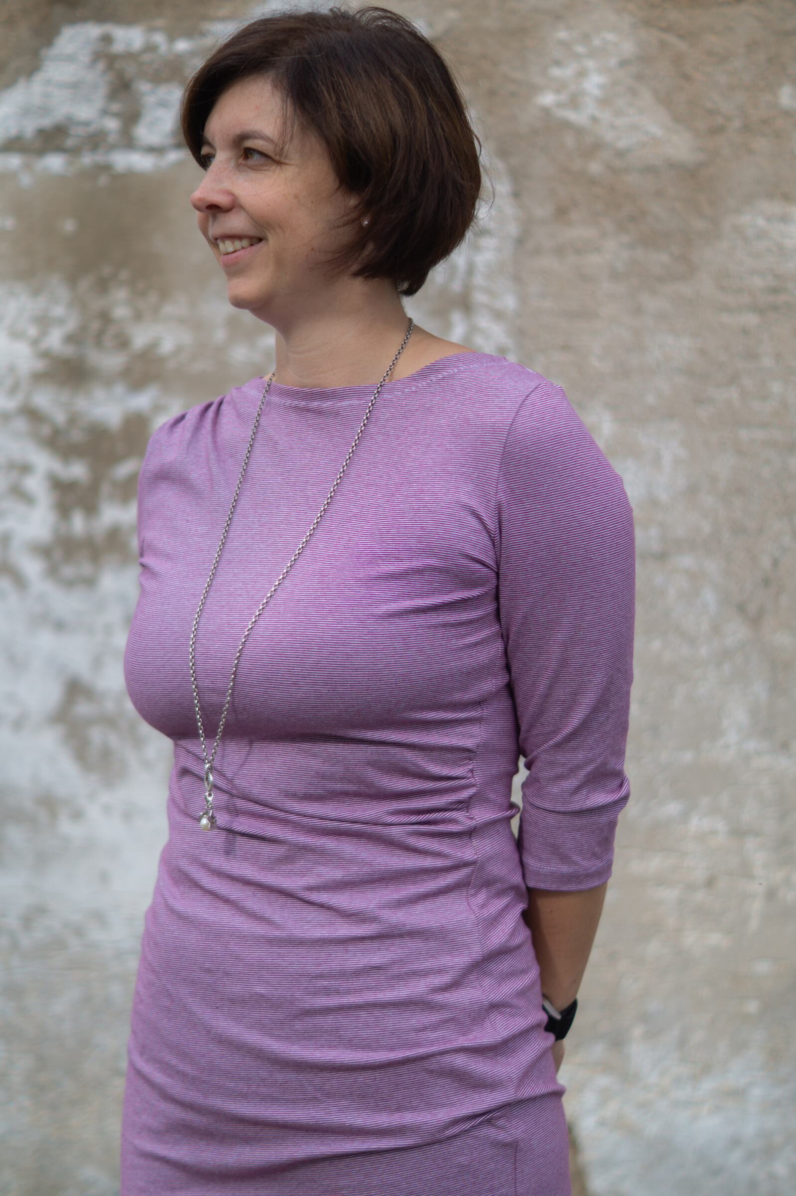 Schnittmuster: Simples Shirt von Klimperklein aus dem Buch Nähen mit Jersey Lieblingsmodelle für Erwachsene (Größe XXS-3XL) – KLIMPERGROSS! in Größe L – verlängert, Saum begradigt und Bündchen dran.