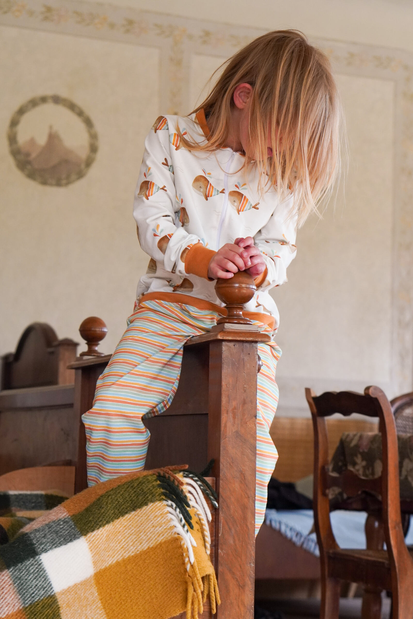 Schnittmuster: Basic Shirt von Klimperklein in Größe 128 aus dem Buch Nähen mit Jersey für Kinder (Größe 104-164) – KLIMPERKLEIN!. Änderungen: Um 5cm Gekürzt und dafür Bauchbündchen ergänzt + eigene Bauchtasche zugefügt.